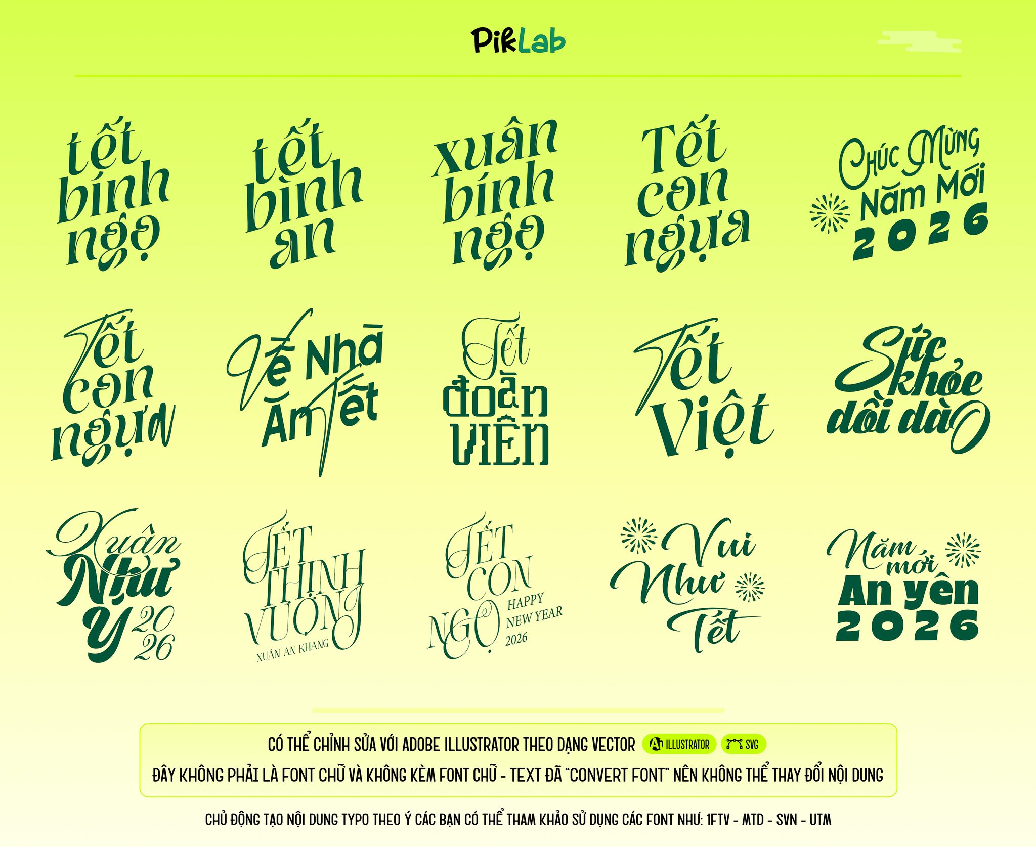 Gồm có 2 bộ Typography Tết 2026 độc quyền từ PikLab