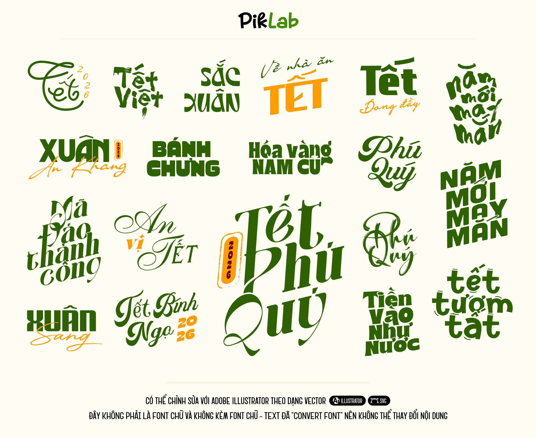 Bộ Typography Tết 2026 Độc Quyền Từ PikLab: Tài Nguyên Thiết Kế Việt Ấn Tượng