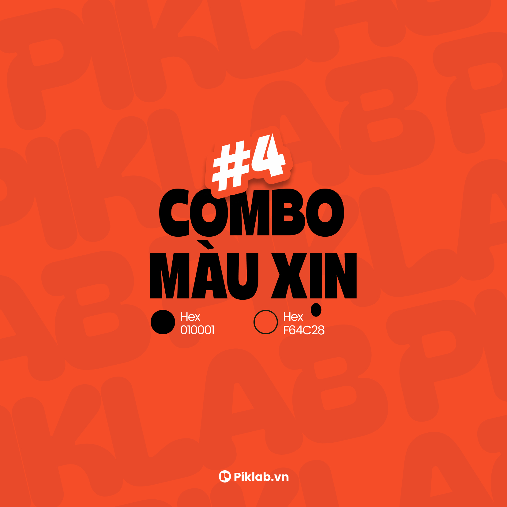 #010001 (Đen) cùng #F64C28 (Cam Sáng) thể hiện mạnh mẽ và thu hút phù hợp với thiết kế về Tiêu đề, CTA (Call to Action), Thiết kế Goth/Chic.