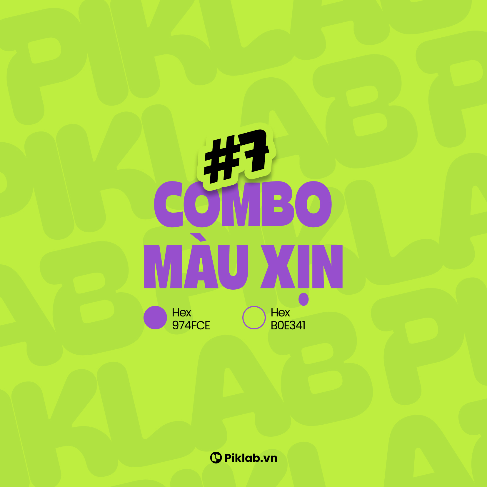 #974FCE (Tím Pastel) cùng #B0E341 (Xanh Lá Neon) thể hiện sự độc đáo và tươi tắn phù hợp với thiết kế về Logo, Thiết kế Branding cho sản phẩm mới.