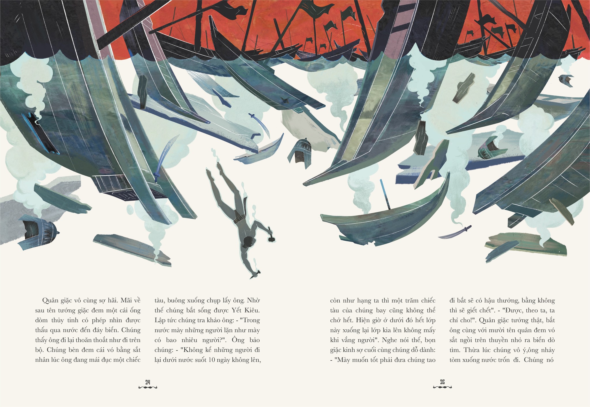 Bộ đồ án đã khai thác những khía cạnh kỳ ảo, sử thi và đôi khi là sự khốc liệt của các cuộc chiến chống ngoại xâm, thiên tai. Cách sử dụng mảng miếng, đường nét và bố cục trong các tác phẩm mang đậm hơi hướng đồ họa hiện đại nhưng vẫn giữ được "hồn cốt" của mỹ thuật dân gian Việt Nam.