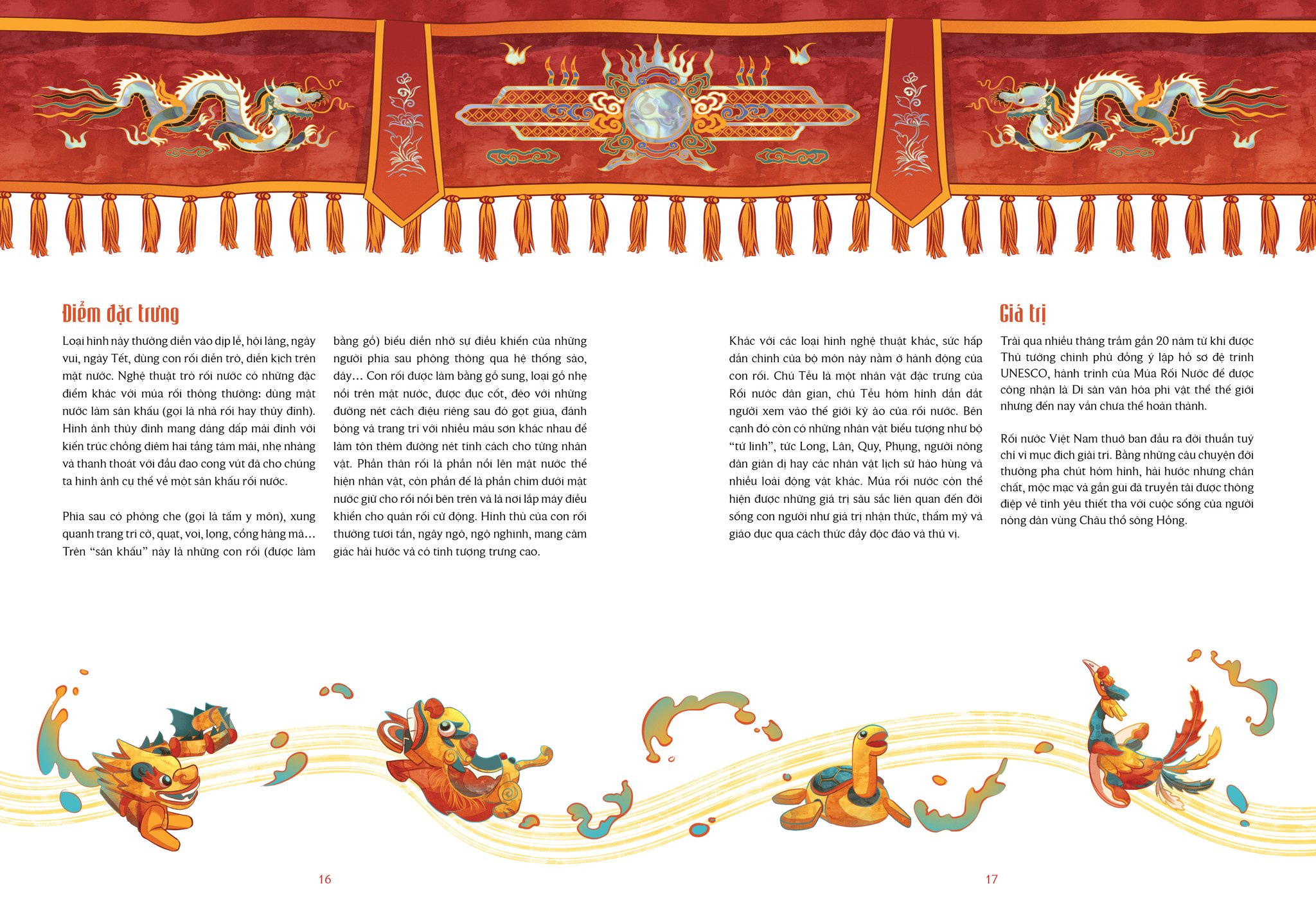 Bằng những gam màu nóng ấm và đường nét uốn lượn của sóng nước, Kim Ngân đã tái hiện lại không gian biểu diễn đặc trưng của nghệ thuật Múa Rối Nước. Những con rối gỗ vô tri trở nên có hồn, kể lại những câu chuyện lịch sử và đời sống sinh hoạt từ thời nhà Lý.