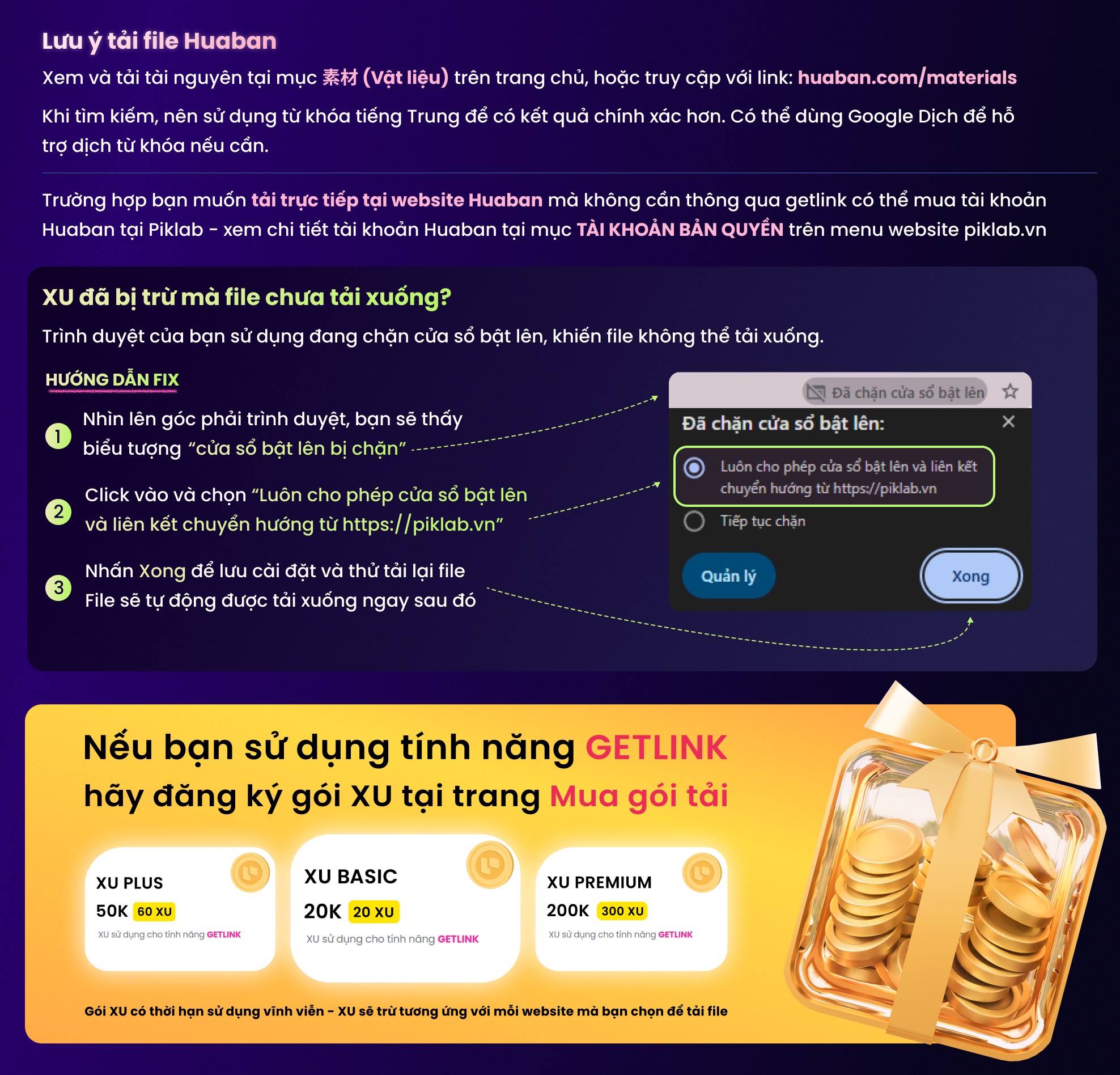 ⚠️ Do đặc thù về máy chủ Trung Quốc và giới hạn truy cập quốc tế, việc getlink Huaban có thể xảy ra lỗi hoặc gián đoạn. Vì vậy, nếu gặp lỗi trong quá trình tải file từ Huaban, bạn có thể đợi và thử lại sau vài phút.