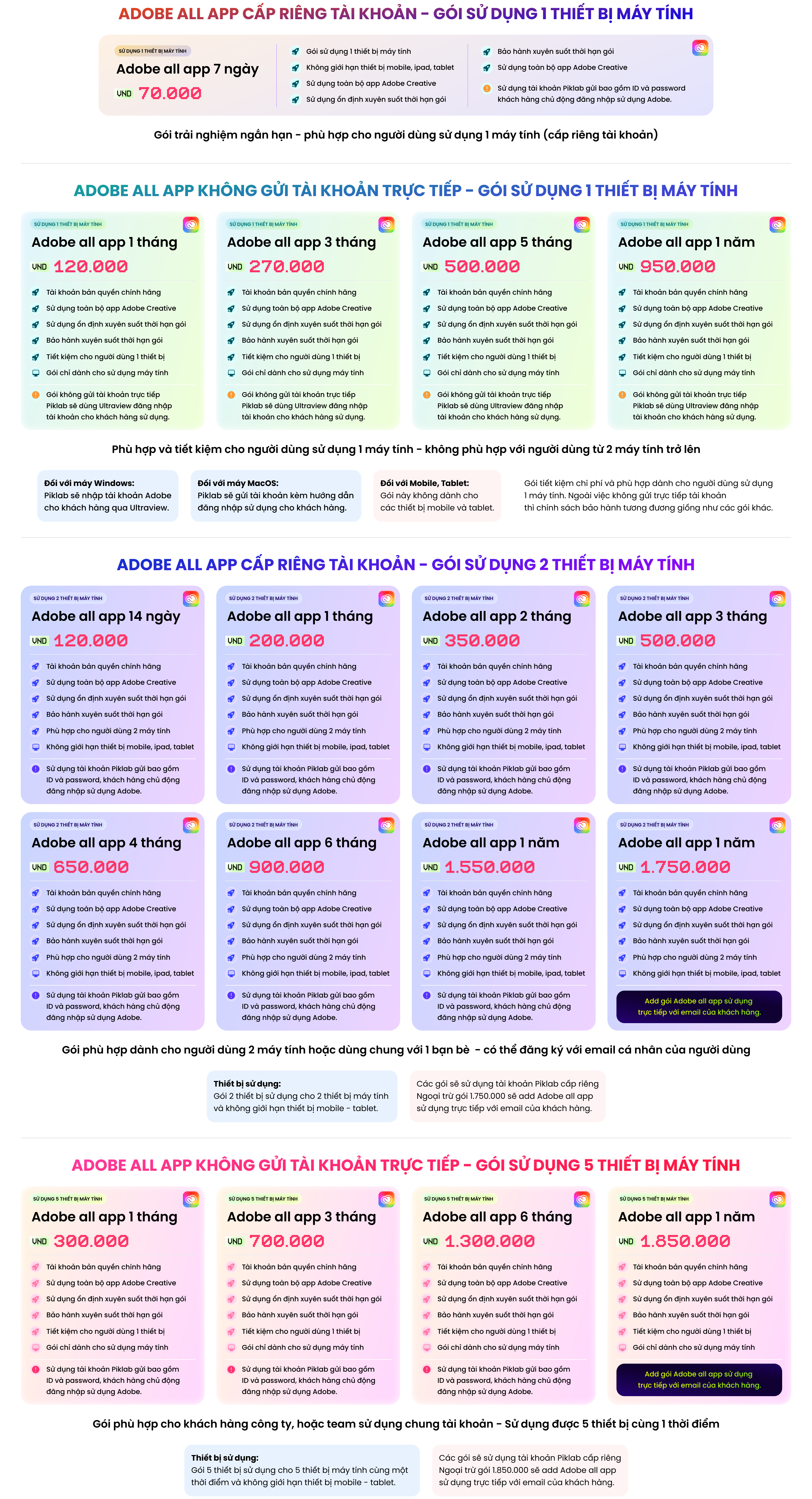 - Gói Adobe 1 thiết bị - không cấp tài khoản riêng
