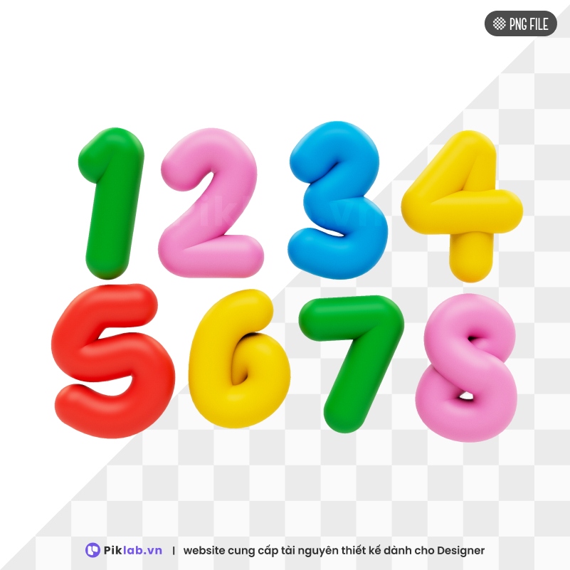 3D Clay Numbers PNG – Colorful Puffy Numbers 1 to 8 in Play-Doh Style, số 3D đất sét, số hoạt hình, PNG file