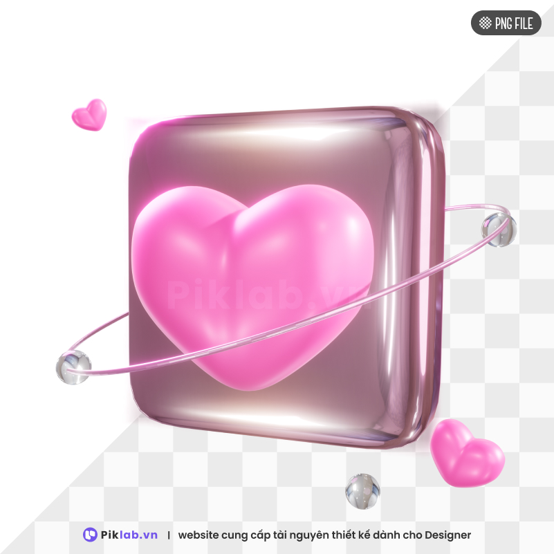 3D Icon Pink Heart in Glass Cube PNG – Glowing Heart Inside a Transparent Cube, biểu tượng trái tim, lồng kính, PNG file