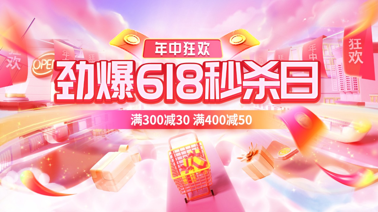 "Crazy 618 Flash Sale Day" promotional poster as part of the mid-year shopping festival. The poster features a lively and energetic cartoon design with pink and orange as the main colors, khuyến mại mua sắm
