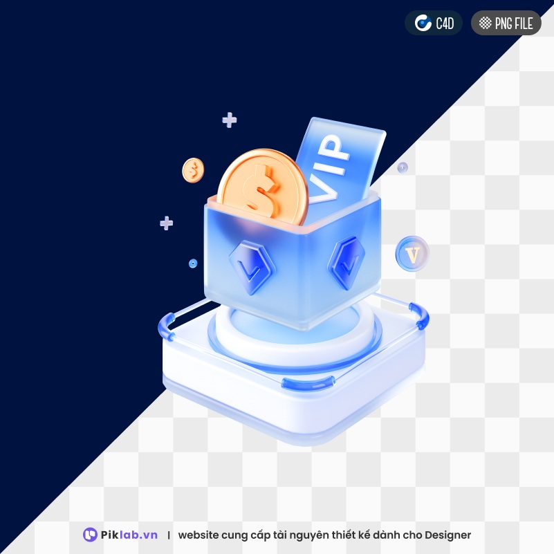 Design resource 3D VIP Box with Coin and Checkmark in Transparent PNG Thiết kế Hộp VIP