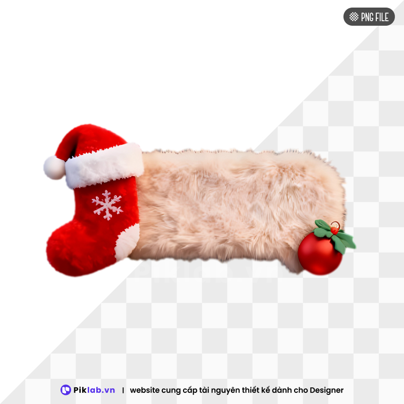 Fluffy Christmas Tag Png File, "Beige Fur Texture" with Red Stocking & Bauble, mẫu banner khung lông màu be mềm mại, trang trí hình chiếc tất đỏ và quả châu png file