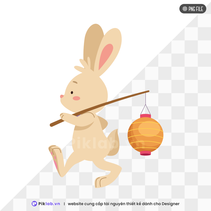 Happy Mid Autumn Festival with cute bunny holding lantern, tết trung thu vui vẻ với chú thỏ dễ thương cầm đèn lồng, PNG file