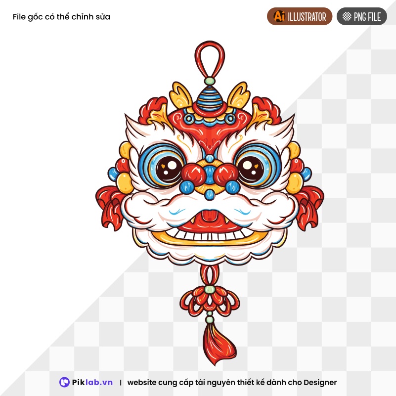 Illustration depicts a fierce and elaborately decorated lion's head, with piercing eyes and a prominent white beard. PNG file, chúc mừng năm mới, đầu múa lân truyền thống, PNG tết