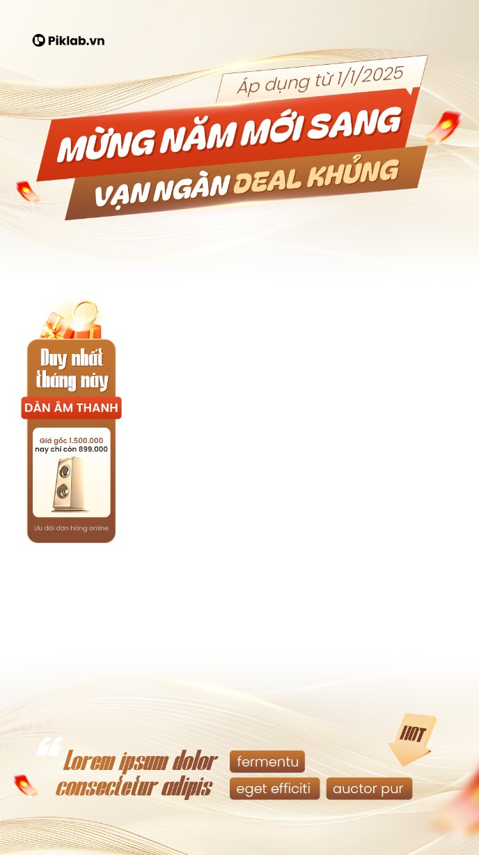 New Year Sale Poster, "Mừng Năm Mới Sang - Vạn Ngàn Deal Khủng" Modern 3D Gold & White Banner, poster quảng cáo khuyến mãi tết hiện đại, chữ vàng 3D nổi bật trên nền trắng sang trọng, chủ đề thương mại điện tử