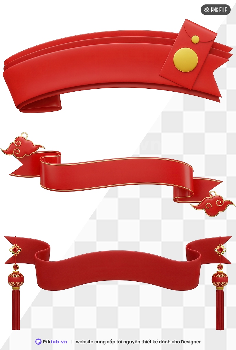 Pack Ribbon Red Happy Lunar New Year, Gói ruy băng đỏ Chúc mừng năm mới âm lịch Tết Nguyên Đán