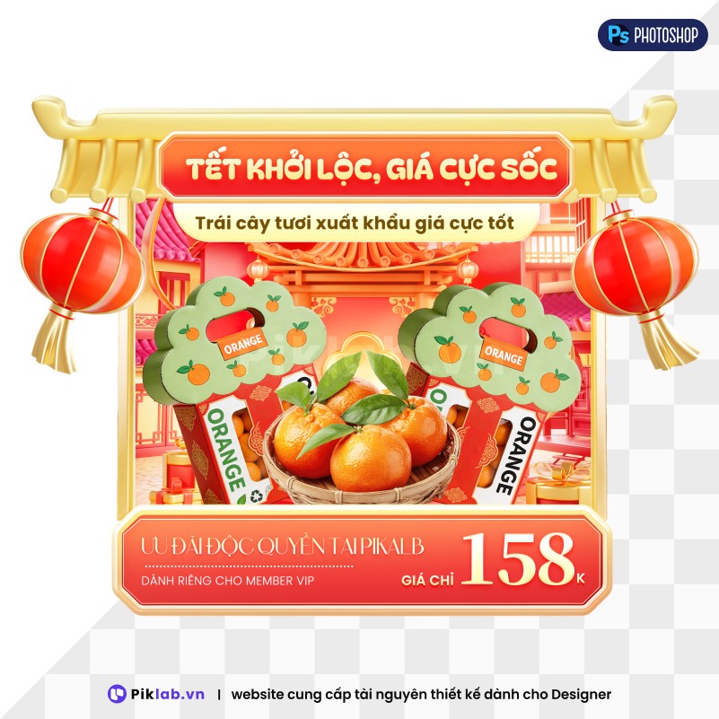 Royal Oriental Fruit Sale Popup with Golden Gate Frame and Red Lanterns - Tet Promotion Banner, Tết Khởi Lộc Giá Cực Sốc, Deal Trái Cây Tươi Xuất Khẩu Tết Bính Ngọ, thương mại điện tử
