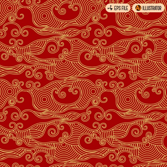 Tet Pattern Luxury Red Cloud & Golden Line Vector - Elegant Oriental Lucky Cloud, Pattern Tết Họa Tiết Mây Tản Chỉ Vàng Sang Trọng - Họa Tiết Tết Mây Sang Trọng, May Mắn